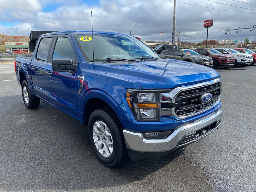 Apple CarPlay: Seamless smartphone integration for this 1/2 ton pickup - stay connected and entertained on the go! The state of the art park assist system will guide you easily into any spot. This model comes equipped with Android Auto for seamless smartphone integration on the road. See what's behind you with the back up camera on this 2023 Ford F-150 . Bluetooth technology is built into this Ford F-150, keeping your hands on the steering wheel and your focus on the road. Never get into a cold vehicle again with the remote start feature on this unit. The vehicle shines with an exquisite blue finish. This Ford F-150 has a V6, 3.5L high output engine. This model has four wheel drive capabilities. The high efficiency automatic transmission shifts smoothly and allows you to relax while driving. The fog lights cut through the weather so you can see what's ahead.